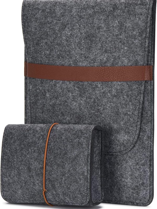 Vertical 15 Inch Pro Sleeve Protective Laptop Case for 16 Inch Pro 2019, 15 Inch Pro 2015-2019, Dell XPS 15 with Small Felt Accessory Bag (Dark Gray)