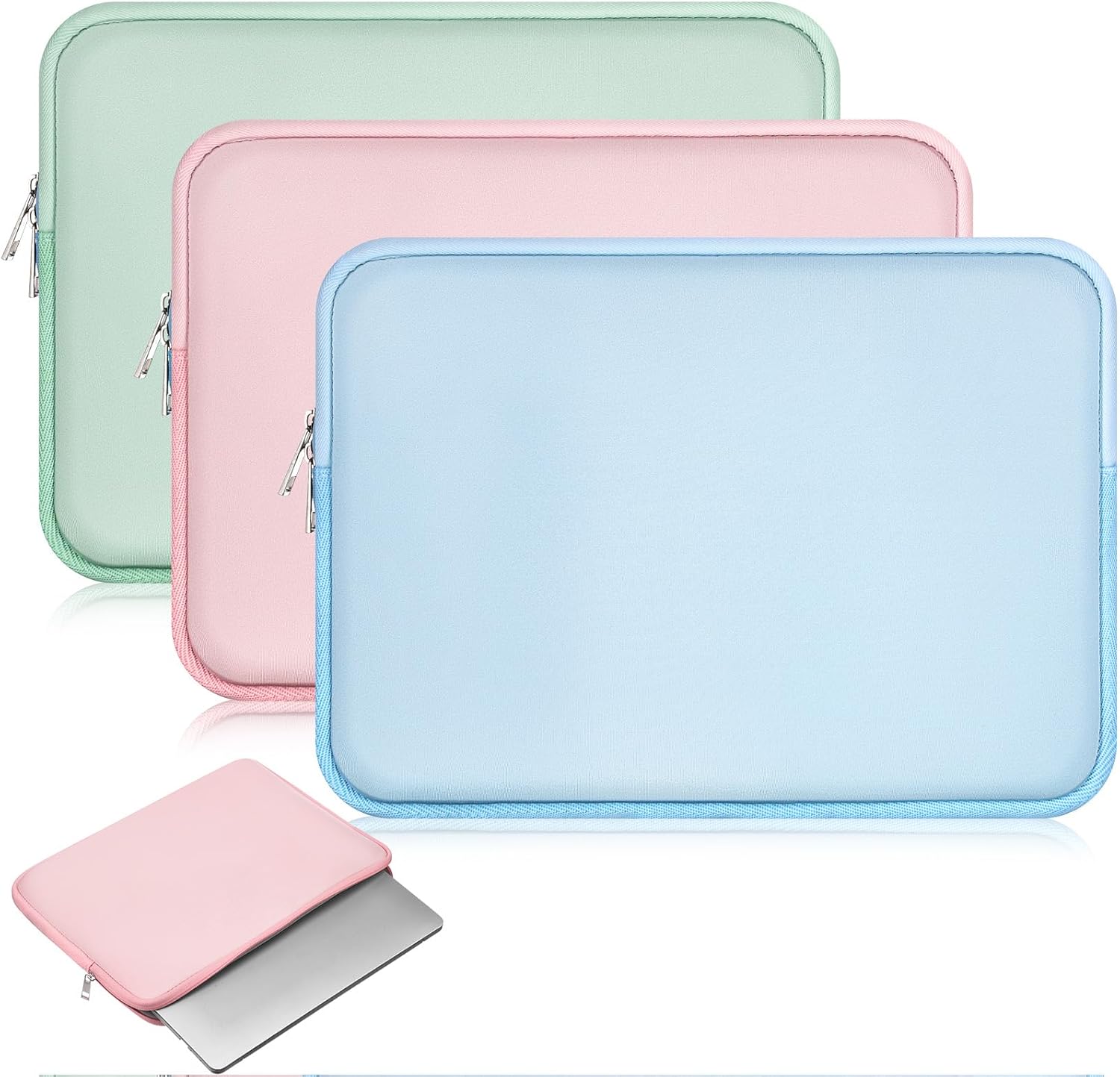 3 Pcs Laptop Sleeve Bag 13-13.3 Inches Protective Case with Zipper Macaron Color Laptop Bag Polyester Vertical Laptop Case for Office Travel Business Trips