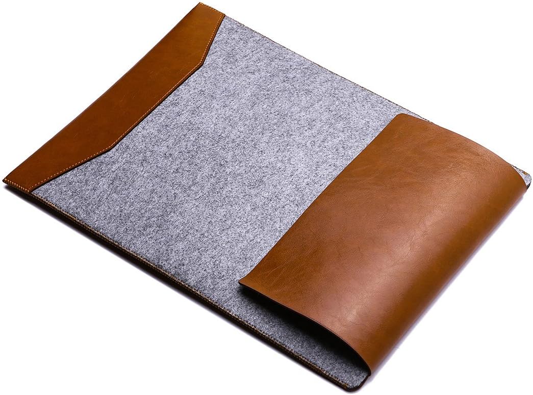 Soft Wool Felt with Microfiber Leather Laptop Sleeve Bag Ultra Slim Anti-Scratch Protective Protection Case Cover Compatible with (Coffee, for Pro 13″ with Display)